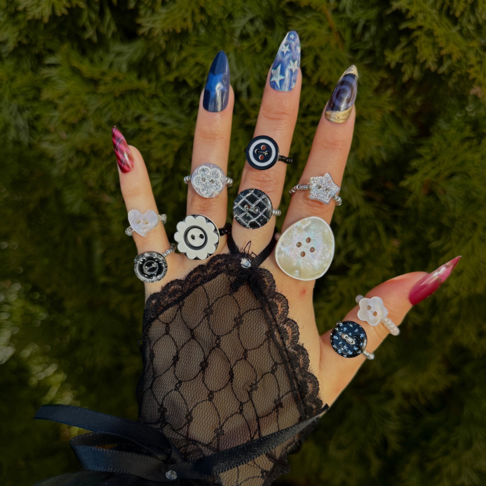 Each ring is hand assembled, so individual pieces may slightly vary. Most rings are available as one-of-a-kind pieces, although some designs may exist in a few copies.