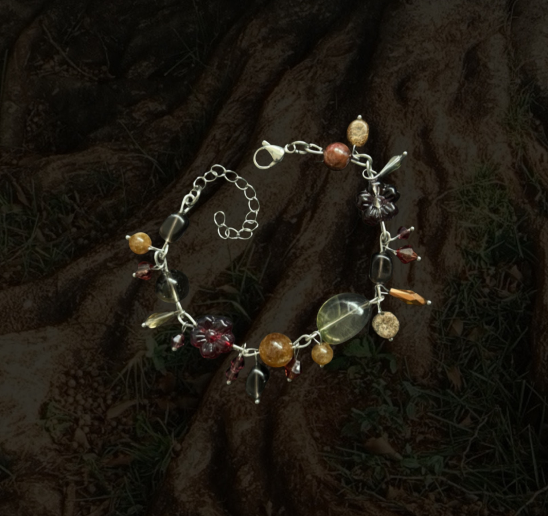 This spring bracelet collection is made from stainless steel and combined with a variety of natural minerals, acrylic beads, and glass beads. Each bracelet is carefully handcrafted to resemble a small spring garden, filled with flowers, leaves, and delicate details.