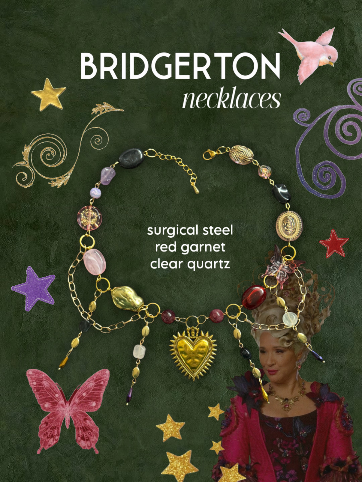 Pearls add softness, femininity and protective energy to the piece. They have long been associated with emotional wisdom, calmness and the ability to experience the world with an open heart. Their gentle luster symbolizes inner light and reminds us that true strength can be quiet, kind and gentle.
